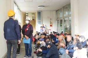 2列に並んで屋内避難所に移動し、整列完了後、員数確認。結果を報告します