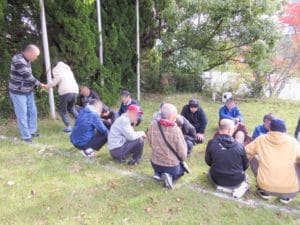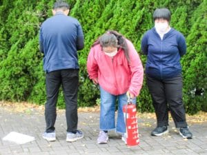 避難場所に待機している利用者さんの点呼確認をします