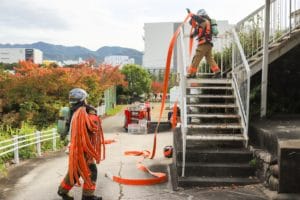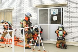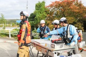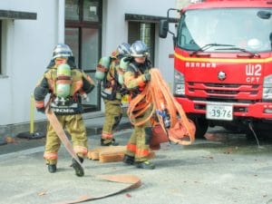 消防隊員の皆さんが現場に急行します