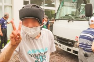 送迎のバスに乗り込み、行ってきま~す!