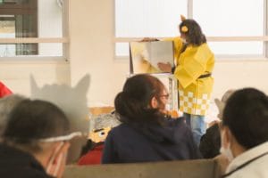 最後は紙芝居や絵本の朗読を眺めながらお菓子を頂きました